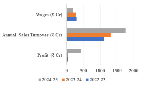 Figure 3 gives Financial Performance of Industrial Cooperative Societies like wages, annual sales turnover and profit.